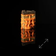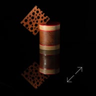 Refined layers of birch and HIP sandwich a hunk of russet sapele.