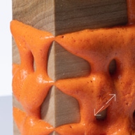 Vivid foam cascades between strata of fresh poplar, with an elm crust.